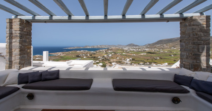 Villa Mira Paros is a stunning property on a 7,500 m² lot has outstanding, uninterrupted panoramic views of the Aegean Sea and the Bay of Paroikia. This unique location with a breath-taking view of the sea surrounded by the beautiful natural landscape of Paros will give you the sense of freedom. You might even believe for a few seconds that you’re floating above the hustle and bustle of the island. Located in the area of Agios Arsenios, this estate is a rare gem that provides great privacy, ultimate comfort and large spaces – ideal for entertaining guests. This extraordinary villa is the perfect holiday lodging to accommodate large groups as can host up to 30 guests in absolute luxury.Datorita dinamicitatii domeniului disponibilitatea ofertelor se modifica de la un moment la altul. De aceea ofertele sunt valabile in limita locurilor disponibile. Agentia nu este responsabila pentru eventualele neconcordante care pot aparea intre informatiile privind tarifele si alte detalii din site si informatiile primite in agentie. In aceste cazuri vor avea prioritate, intotdeauna, informatiile primite in agentie.