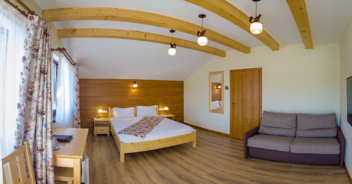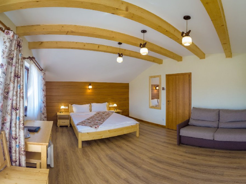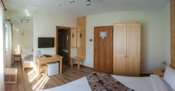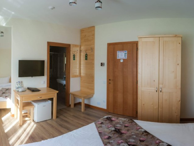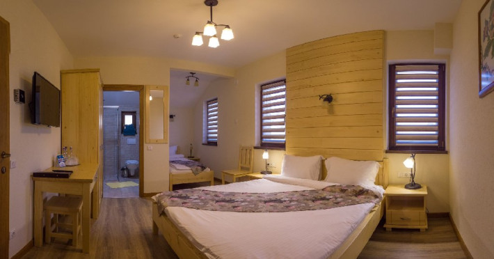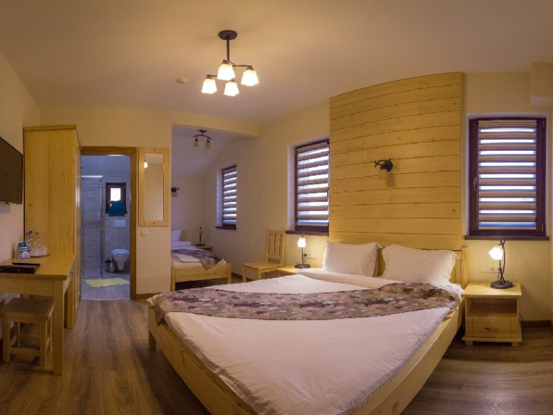 Villa Montana din Borsec oferta turistilor 2 camera duble superior, 2 camere duble deluxe cu balcon, 2 camere triple de familie, 2 camere king cu balcon, gradina cu foisor zona de gatit barbeque, bucatarie si parcare gratuita. Optional masa fisa cont - masa se serveste atat la restaurantul pensiunii cat si la bar.Nu se accepta copiii cu varsta 0-3.99 ani.Unitate Pet friendly - taxa animal companie.