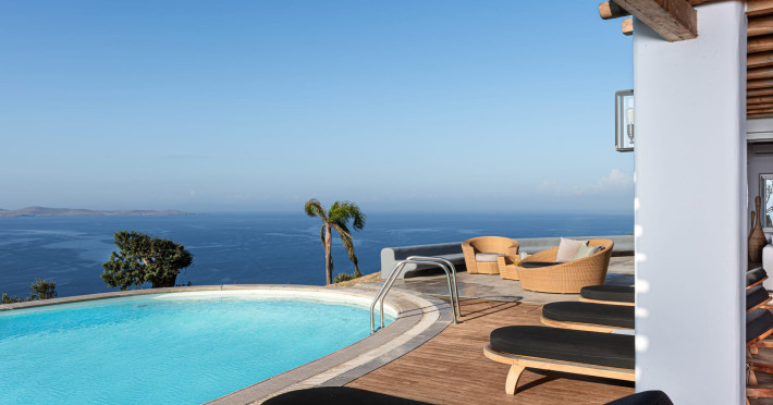 The villa is built with emphasis on space and comfort, featuring a total of eight bedrooms located in the main house and in two separate guest quarters.This villa is characterized by brightness, simple decor and airy interiors. Situated in the prestigious Tourlos area offering majestic sea & sunset views, excellent location with easy access to Mykonos town.The villa is built with emphasis on space and comfort, featuring a total of eight bedrooms located in the main house and in two separate guest quarters.This villa is characterized by brightness, simple decor and airy interiors. Situated in the prestigious Tourlos area offering majestic sea & sunset views, excellent location with easy access to Mykonos town.