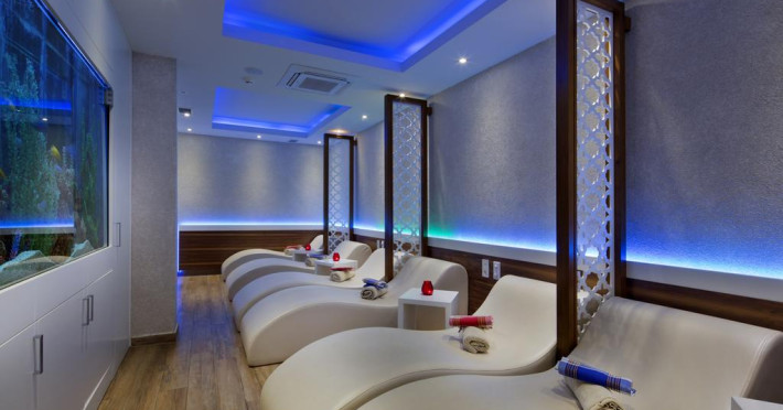 Din facilitățile oferite de proprietate nu lipsesc cele spa, unde oaspeții pot încerca diferite tratamente de înfrumusețare sau se pot relaxa la masaj. Pentru cei interesați proprietatea oferă manichiură & pedichiură, coafor, precum și o întreagă gamă de tratamente corporale. În cadrul proprietatății există 2 piscine în aer liber și tobogane cu apă pentru cei dornici de distracție. Villa Moon Flower Aparts & Suites dispune de aqua park, ceea ce oferă un plus de amuzament copiilor, dar și adulților.