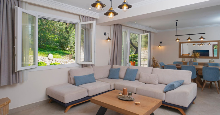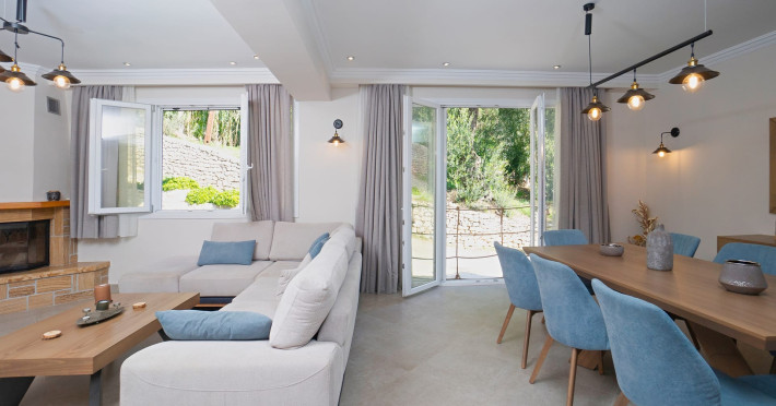 Welcome to Villa Nikolakis!Α wonderful stylish Sea View Villa very close to the small and secret beach of Kerasia, near Agios Stefanos. The villa offers comfort and relaxation, only a few steps from the crystal green-blue waters of Kerasia Beach and composes an idyllic location for those who want to spend quiet moments in nature, and also want to enjoy an easy access to stores that can facilitate their daily needs.There are 3 Bedrooms each with its own en-suite bathroom, equipped with a glass shower. The villa is well furnished, decorated in neutral tones and colors, with comfortable seating and dining facilities for 8 guests. The lounge has a comfortable large sofa and a nice fireplace. The modern kitchen is fully-equipped with all utensils & appliances, ideal for your morning tea or coffee. An extra WC is located at the living room on the ground floor. The property has a bright and spacious interior and offers all modern comforts such as a flat-screen TVs with satellite channels and streaming services, air-conditioning throughout and free Wi-Fi internet access. The wide windows allow the Ionian sunlight to intrude inside all the areas, creating a unique atmosphere. Outdoor areas feature spacious furnished verandas, sunbeds, dining table, and outdoor parking for up to 2 cars.The amazing white pebbled Beach of Kerassia is only 150 meters away. It takes around 3 minutes to walk down to the beach where there is a lovely little taverna and a cafe right on the seafront. Agios Stefanos, the renowned and picturesque fishermen’s' quaint harbour, is at the adjacent bay. There you can find shops, cafes and tavernas, all looking at the calm sea and wooden jetties. You can hire motorboats here and explore the hidden beaches and inlets only accessible by boat! The fishing villages of Kalami and Kassiopi are 5 and 6 km away and the lively shops, bars and restaurants of the old town of Corfu are only 32 kilometers away. Everything is very easily accessible on foot while in the areas of Kerassia and Agios Stefanos (Sinies) for those who love trekking.Welcome to Villa Nikolakis!Α wonderful stylish Sea View Villa very close to the small and secret beach of Kerasia, near Agios Stefanos. The villa offers comfort and relaxation, only a few steps from the crystal green-blue waters of Kerasia Beach and composes an idyllic location for those who want to spend quiet moments in nature, and also want to enjoy an easy access to stores that can facilitate their daily needs.There are 3 Bedrooms each with its own en-suite bathroom, equipped with a glass shower. The villa is well furnished, decorated in neutral tones and colors, with comfortable seating and dining facilities for 8 guests. The lounge has a comfortable large sofa and a nice fireplace. The modern kitchen is fully-equipped with all utensils & appliances, ideal for your morning tea or coffee. An extra WC is located at the living room on the ground floor. The property has a bright and spacious interior and offers all modern comforts such as a flat-screen TVs with satellite channels and streaming services, air-conditioning throughout and free Wi-Fi internet access. The wide windows allow the Ionian sunlight to intrude inside all the areas, creating a unique atmosphere. Outdoor areas feature spacious furnished verandas, sunbeds, dining table, and outdoor parking for up to 2 cars.The amazing white pebbled Beach of Kerassia is only 150 meters away. It takes around 3 minutes to walk down to the beach where there is a lovely little taverna and a cafe right on the seafront. Agios Stefanos, the renowned and picturesque fishermen’s' quaint harbour, is at the adjacent bay. There you can find shops, cafes and tavernas, all looking at the calm sea and wooden jetties. You can hire motorboats here and explore the hidden beaches and inlets only accessible by boat! The fishing villages of Kalami and Kassiopi are 5 and 6 km away and the lively shops, bars and restaurants of the old town of Corfu are only 32 kilometers away. Everything is very easily accessible on foot while in the areas of Kerassia and Agios Stefanos (Sinies) for those who love trekking.