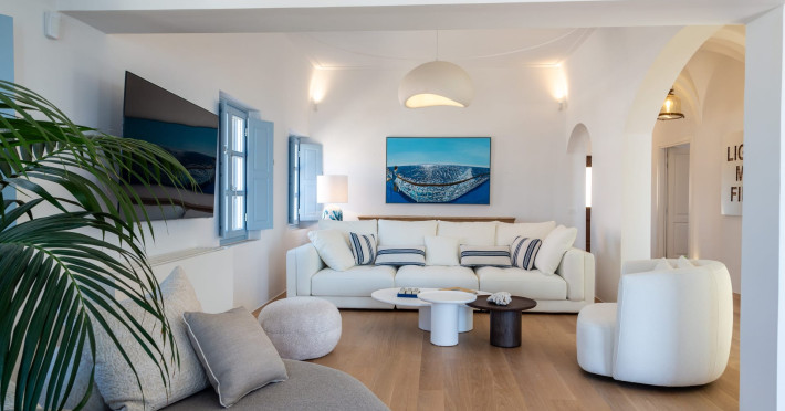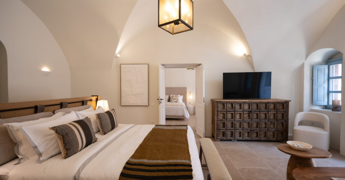The propertyA Historic MansionBestowed with the distinction of a “cultural heritage building,” Villa Oro stands as a stunning example of a traditional 'captain house', where timeless elegance meets modern refinement. Its ornate facades, grand high cross-vaulted ceilings, and meticulously restored details pay tribute to Santorini’s rich maritime history and the legacy of the island’s esteemed shipowners / captains.Every corner of Villa Oro has been meticulously restored to offer modern luxury while preserving its authentic character. Exquisite Layout & Thoughtful DesignGround Floor – Private & Spacious Retreats* Three extra-large en-suite bedrooms, each with its own independent entry for ultimate privacy* Each room includes a king size (1.80m wide) bed and a super comfortable convertible double sofa bed, ideal for extra guests and Rainfall Showers & High-Pressure Showerheads* Thoughtfully equipped with Nespresso machines, milk frothers, kettles, electric stoves, mini bars, and all necessary cookware (pots, pans, cutlery, glasses, wine opener, plates)* Interconnected by double doors, ensuring both excellent soundproofing and the flexibility to move between rooms if needed First Floor – Elegant Common Spaces & Private Suites* Two elegantly appointed en-suite bedrooms—one featuring a luxurious 1.80-meter-wide bed, the other a comfortable 1.60-meter-wide bed—each with spa-style bathrooms fitted with rainfall showers and high-pressure showerheads.* A stylish guest WC for added convenience* A spacious living room, ideal for relaxing while taking in breathtaking views of Oia, the iconic blue domes, and the shimmering Aegean Sea.* Dining area and fully equipped kitchen, complemented by a pantry for extra storage Rooftop – The Ultimate Santorini Experience* The highest rooftop in Oia, offering breathtaking, uninterrupted panoramic views of the entire island* A large swimming pool, perfect for cooling off while admiring the views* A perfect setup for suntanning and sunset cocktails, with extra-large comfortable sunbeds, a lounge couch, creating an idyllic space for relaxation or entertaining* A mini bar for convenience*An optional dining table for a private rooftop dinner under the stars Villa Oro’s carefully designed layout ensures privacy, comfort, and seamless indoor-outdoor living, making it the perfect choice for an unforgettable stay in Santorini.Discover the magic of Santorini in every season—our doors are open year-round, and we’re always ready to welcome you. License number: 1369463The propertyA Historic MansionBestowed with the distinction of a “cultural heritage building,” Villa Oro stands as a stunning example of a traditional 'captain house', where timeless elegance meets modern refinement. Its ornate facades, grand high cross-vaulted ceilings, and meticulously restored details pay tribute to Santorini’s rich maritime history and the legacy of the island’s esteemed shipowners / captains.Every corner of Villa Oro has been meticulously restored to offer modern luxury while preserving its authentic character. Exquisite Layout & Thoughtful DesignGround Floor – Private & Spacious Retreats* Three extra-large en-suite bedrooms, each with its own independent entry for ultimate privacy* Each room includes a king size (1.80m wide) bed and a super comfortable convertible double sofa bed, ideal for extra guests and Rainfall Showers & High-Pressure Showerheads* Thoughtfully equipped with Nespresso machines, milk frothers, kettles, electric stoves, mini bars, and all necessary cookware (pots, pans, cutlery, glasses, wine opener, plates)* Interconnected by double doors, ensuring both excellent soundproofing and the flexibility to move between rooms if needed First Floor – Elegant Common Spaces & Private Suites* Two elegantly appointed en-suite bedrooms—one featuring a luxurious 1.80-meter-wide bed, the other a comfortable 1.60-meter-wide bed—each with spa-style bathrooms fitted with rainfall showers and high-pressure showerheads.* A stylish guest WC for added convenience* A spacious living room, ideal for relaxing while taking in breathtaking views of Oia, the iconic blue domes, and the shimmering Aegean Sea.* Dining area and fully equipped kitchen, complemented by a pantry for extra storage Rooftop – The Ultimate Santorini Experience* The highest rooftop in Oia, offering breathtaking, uninterrupted panoramic views of the entire island* A large swimming pool, perfect for cooling off while admiring the views* A perfect setup for suntanning and sunset cocktails, with extra-large comfortable sunbeds, a lounge couch, creating an idyllic space for relaxation or entertaining* A mini bar for convenience*An optional dining table for a private rooftop dinner under the stars Villa Oro’s carefully designed layout ensures privacy, comfort, and seamless indoor-outdoor living, making it the perfect choice for an unforgettable stay in Santorini.Discover the magic of Santorini in every season—our doors are open year-round, and we’re always ready to welcome you. License number: 1369463