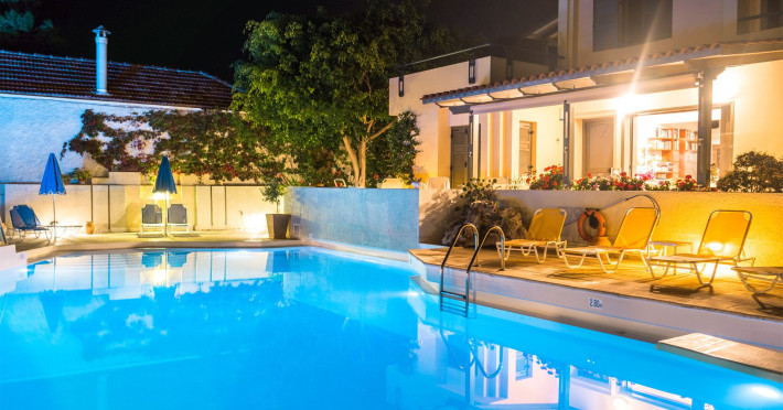 Villa Pefki holiday apartments are situated in Chanias exclusive residential area of Agios Matheos, a heavily wooded hillside well above the hustle and bustle of the city of Chania, with just a few houses in extensive pine shaded gardens. This small group of 5 unique villassharing a huge 14m x 6m pool and surrounded by tall stately pine trees is set on the edge of the hillside, with magical views of Cretes distant White Mountains. The three separate building units, containing these 5 villas are spaced well apart around one side of the pool and separated by pretty flower filled gardens with little tiled patios on different levels. Just 3km fromChanias wonderful old town and no more than a 15minutes drive from Akrotiris peninsula lovely beaches, Villa Pefki hotel apartments are the best choise for wonderful vacations on the island of Crete.Datorita dinamicitatii domeniului disponibilitatea ofertelor se modifica de la un moment la altul. De aceea ofertele sunt valabile in limita locurilor disponibile. Agentia nu este responsabila pentru eventualele neconcordante care pot aparea intre informatiile privind tarifele si alte detalii din site si informatiile primite in agentie. In aceste cazuri vor avea prioritate, intotdeauna, informatiile primite in agentie.