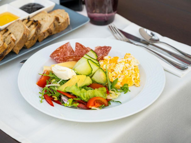 Camerele spațioase sunt decorate cu mobilier de calitate și dispun de băi private luxoase, TV cu ecran plat și zone de relaxare. Restaurantul hotelului servește preparate din bucătăria internațională și specialități locale, intr-o atmosferă elegantă cu elemente decorative tradiționale.