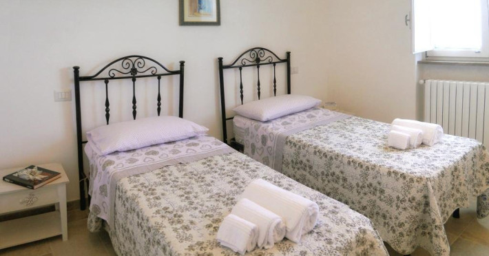 Camerele sunt confortabile, fiind mobilate foarte practic si placut, pentru ca oaspetii sa dispuna de toate facilitatile necesare unui sejur in Puglia. Are in compenenta 4 dormitoare cu mobila superba, confectionata din lemn negru, doua bai care sunt despartite de doua camere, una twin si una single, un living room cu TV si semineu, o bucatarie complet mobilata si utilata, inclusiv cu masina de spalat haine si masina de spalat vase.