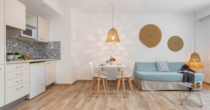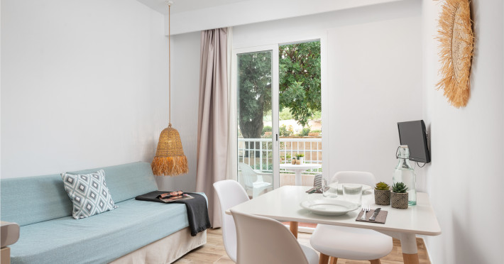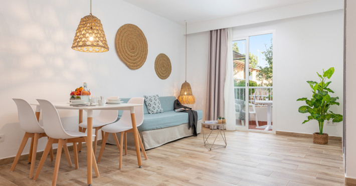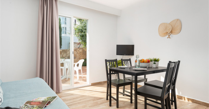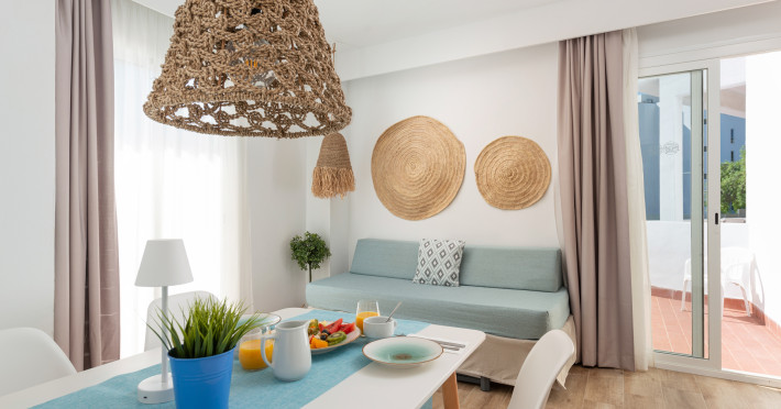 Around 100 m from a public sandy beach is located the apart hotel VILLA REAL CLUB APARTMENTS. The nearest restaurants and bars can be reached in a few minutes on foot. The old town is around 20 km away. A supermarket and other shops you reach after around 200 m. On the beach are cushions available. At the beach there is a bar serving refreshing drinks. There is also a promenade here where you can go for a stroll. The air-conditioned, GPS-verified hotel is equipped with a 24h reception (check-in is possible around the clock), a lobby bar, Wi-Fi, internet access, a lift, cash machine, showers and changing rooms, parking spaces as well as a TV lounge with satellite TV. At the pool, deck chairs, parasols and pool towels are available for free. Furthermore, you can relax outdoors on the sun terrace and in a garden. Your valuables can be stored in the hotel safe. For very young guests, kid`s chairs and cots can be provided. There is also a laundry service. If necessary, you can contact the medical centre. The energy supply is 220 and 230 Volts. If you want to explore the holiday region, you can use the car rental service close to the hotel. In your hotel, a lot of focus is placed on sustainability. This includes the hotel`s own recycling bins, the provision of soap, shampoo and lotion dispensers, organic food and ecological meals, a central room air-conditioning and environmentally-friendly cleaning. Euro/Master Card, Visa and EC cards are accepted as means of payment. Catering As catering services the hotel offers breakfast only. Breakfast is offered from the buffet. Enjoy your lunch à la carte. Dinner is also served as a buffet or à la carte. For the meals, there are a buffet restaurant with terrace and a bar, the cafeteria as well as the pool bar. Distances
