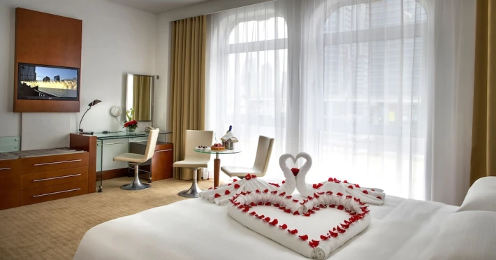 Property LocationIn the heart of Dubai, Villa Rotana is within a 5-minute drive of Dubai Water Canal Waterfall and City Walk. This 4-star aparthotel is 2.4 mi (3.9 km) from Mercato Shopping Mall and 2.5 mi (3.9 km) from Burj Khalifa.Rooms Make yourself at home in one of the 118 air-conditioned rooms featuring kitchenettes. Complimentary wireless Internet access keeps you connected, and satellite programming is available for your entertainment. Conveniences include phones, as well as safes and desks.Amenities Spend the day on the private beach or dip into one of the 2 spa tubs. Additional features at this Mediterranean aparthotel include complimentary wireless Internet access, concierge services, and babysitting/childcare (surcharge).Dining For lunch or dinner, stop by Moka Cafe, a restaurant that specializes in international cuisine. Dining is also available at the coffee shop/café, and 24-hour room service is provided. Buffet breakfasts are available daily from 6 AM to 10:30 AM for a fee.Business, Other Amenities Featured amenities include a 24-hour business center, limo/town car service, and express check-in. Planning an event in Dubai? This aparthotel features 4153 square feet (386 square meters) of event facilities. A roundtrip airport shuttle is provided for a surcharge (available 24 hours), and free valet parking is available onsite.Datorita dinamicitatii domeniului disponibilitatea ofertelor se modifica de la un moment la altul. De aceea ofertele sunt valabile in limita locurilor disponibile. Agentia nu este responsabila pentru eventualele neconcordante care pot aparea intre informatiile privind tarifele si alte detalii din site si informatiile primite in agentie. In aceste cazuri vor avea prioritate, intotdeauna, informatiile primite in agentie.