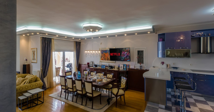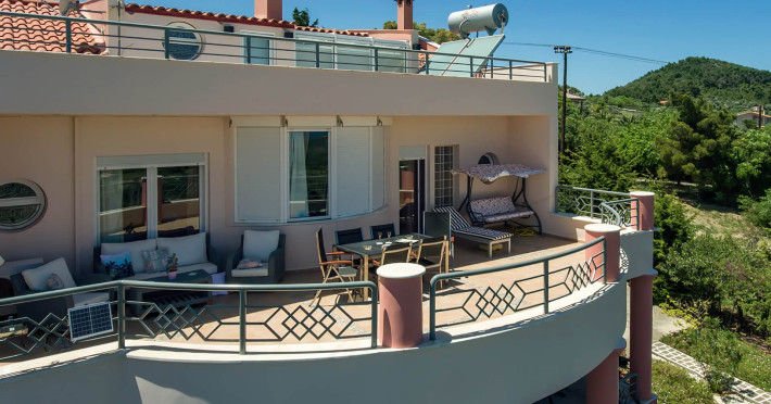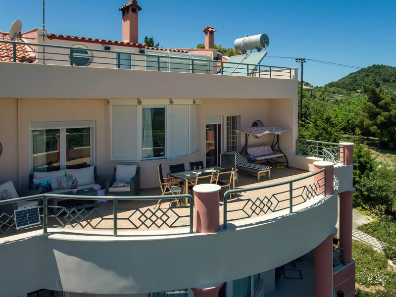 villa serenity (by the sea) is a modern, contemporary, fully furnished villa of 360 sq.mtrs and one acre of plants, fruits and decorating trees, located in the heart of kymi. The villa is characteristic of a small museum, because its decoration is of high quality s material with stucho veneciano and vetro in glass technique, its curtains are of pure silk and coppies of Fornasseti s paintings, most of the lights are of famous Architects from Milano and all its decoration has designed by Greek Architects, one of them is Mr. G.Kritharis. It can serve nine persons.there are 4 bedrooms, luxury kitchen of all amenities, living and dining room, desk room, big verandahs with city, mountain and sea view. in master bedroom of 50 sq.mtrs there are: fire place (there is one extra in living room), cloakroom, secretaire and a big zaccuzi bath. there are 2 luxury baths and 2 wcs. on the loft there are 3 single beds, 1 wc and 1 mini refrigerator. all other bedrooms have queen size beds with mattresses of high quality, anatomic, orthopedic and hypoallergic, not only for sleeping but also for living. independent main entrance. free of charge: wifi (code given upon arrival), 2 car parking positions, satellite tv and airconditioning in all rooms, aparatus excercise. villa is of three levels with stairs. there are beaches in short distance, the famous honeftiko with curative springs and lots of mountains for adventure and excursions. there are also supermarkets, restaurants, bars and lots of shops, big hospital as well. we can show you around. furthermore, those who love andentures, our district can offer gorgeous places for walking, diving, swimming, climbing and riding. please, do not forget to try it. first food facilities for your first breakfast are free of charge. a wellcome drink with sweets and snakcs are waiting for you. keys are given to you upon your arrival along with additional information. our folklore museum will surprise you with its performances, during summer period, as well as lots of events are happening during summer that will leave you speechless. please do not miss to taste local cuisine, we can teach you some recipes if you wish. Smoking and pets are not allowed.villa serenity (by the sea) is a modern, contemporary, fully furnished villa of 360 sq.mtrs and one acre of plants, fruits and decorating trees, located in the heart of kymi. The villa is characteristic of a small museum, because its decoration is of high quality s material with stucho veneciano and vetro in glass technique, its curtains are of pure silk and coppies of Fornasseti s paintings, most of the lights are of famous Architects from Milano and all its decoration has designed by Greek Architects, one of them is Mr. G.Kritharis. It can serve nine persons.there are 4 bedrooms, luxury kitchen of all amenities, living and dining room, desk room, big verandahs with city, mountain and sea view. in master bedroom of 50 sq.mtrs there are: fire place (there is one extra in living room), cloakroom, secretaire and a big zaccuzi bath. there are 2 luxury baths and 2 wcs. on the loft there are 3 single beds, 1 wc and 1 mini refrigerator. all other bedrooms have queen size beds with mattresses of high quality, anatomic, orthopedic and hypoallergic, not only for sleeping but also for living. independent main entrance. free of charge: wifi (code given upon arrival), 2 car parking positions, satellite tv and airconditioning in all rooms, aparatus excercise. villa is of three levels with stairs. there are beaches in short distance, the famous honeftiko with curative springs and lots of mountains for adventure and excursions. there are also supermarkets, restaurants, bars and lots of shops, big hospital as well. we can show you around. furthermore, those who love andentures, our district can offer gorgeous places for walking, diving, swimming, climbing and riding. please, do not forget to try it. first food facilities for your first breakfast are free of charge. a wellcome drink with sweets and snakcs are waiting for you. keys are given to you upon your arrival along with additional information. our folklore museum will surprise you with its performances, during summer period, as well as lots of events are happening during summer that will leave you speechless. please do not miss to taste local cuisine, we can teach you some recipes if you wish. Smoking and pets are not allowed.