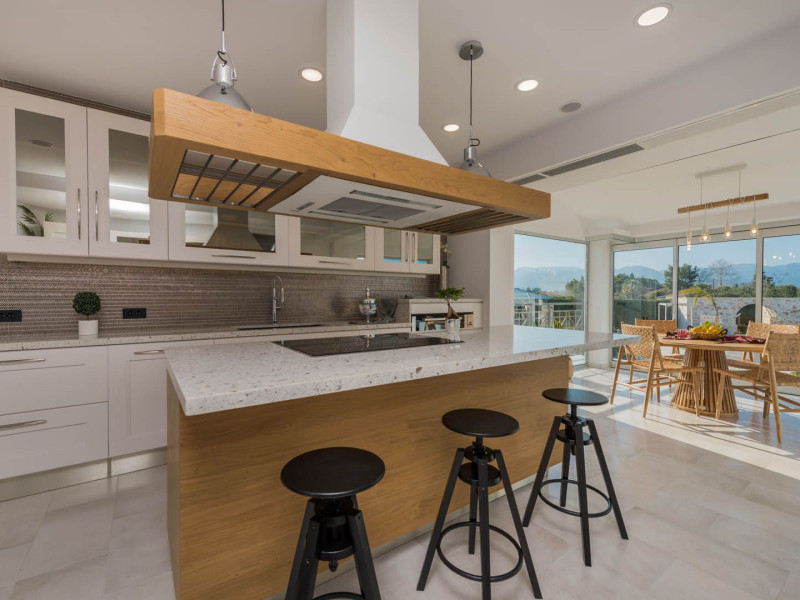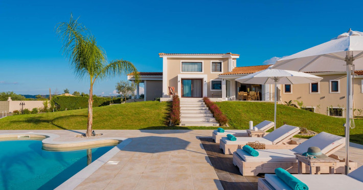 nbsp;On the island of Zakynthos that is also known as the floating paradise on earth, Villa Shangri-La Zakynthos is a brand new luxury villa that started welcoming guests in July of 2020. Villa Shangri-La Zakynthos is grandiose with lavish interiors and opulent exteriors. A luxury vacation rental that can most certainly satisfy the needs even of the most discerning traveller. In terms of accommodation, sleeping and living arrangements, Villa Shangri-La comprises of two buildings. The main house and the stone-built bungalow. In the interiors, the main house offers extra spacious living and dining areas, a modern fully equipped kitchen, a study area, four bedrooms with their own private bathrooms and a WC for guests.nbsp; The bungalow, on the other hand, has its own open plan kitchen, living area, bedroom and bathroom. The bedrooms at the main house are spread on two floors. On the ground level, there is the master bedroom suite with its own ensuite bathroom and two more suites with their private bathrooms. On the upper level where the study area is also set, there is the fourth bedroom with another bathroom. The outdoors of Villa Shangri-La are just a splendour for all guests. The specially shaped swimming pool dominates the scene and is surrounded by perfectly manicured gardens. Why not go straight for a dip in the tropical pool upon arrival no matter what time of day or night that may be. Or you can simply lay in the sunken sofa for a drink in front of the fire pit. The chilling out and outdoor living areas at Villa Shangri-La Zakynthos are ample. Dining al fresco awaits. You are in Greece after all. And if you happen to enjoy outdoor cooking, here you can indulge in barbecues under the glass vaulted ceiling and dine on the dining table for a real Mediterranean feel. If you love exercising, you can surely enjoy one or many games of tennis or badminton, volleyball or basketball. If you prefer to take it at a slower pace a spa and mini gym area are there and available. nbsp; nbsp; nbsp; nbsp;Datorita dinamicitatii domeniului disponibilitatea ofertelor se modifica de la un moment la altul. De aceea ofertele sunt valabile in limita locurilor disponibile. Agentia nu este responsabila pentru eventualele neconcordante care pot aparea intre informatiile privind tarifele si alte detalii din site si informatiile primite in agentie. In aceste cazuri vor avea prioritate, intotdeauna, informatiile primite in agentie.