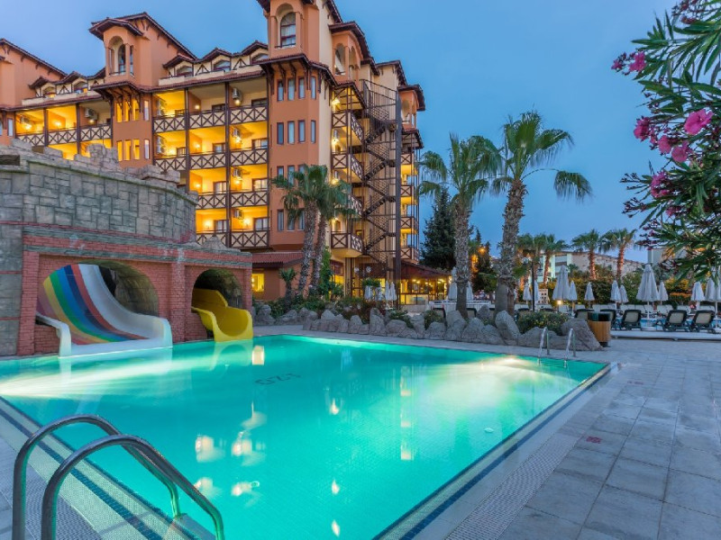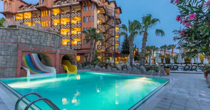 Facilitati hotel: Hotelul ofera oaspetilor sai urmatoarele facilitati: restaurant principal, 3 restaurante a la carte (pescaresc, italian, turcesc), 5 baruri, centru medical, piscina exterioara, piscina cu tobogane pentru adulti si copii, SPA, pisina interioara, sauna, jacuzzi, hammam, miniclub pentru copii, centru fitness, programe de animatie, tenis de masa, sali de conferinta, mini club, piscina interioara si exterioara pentru copii.