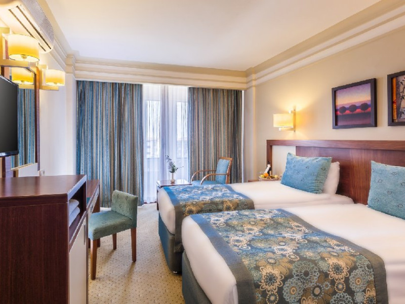 Dotari camere: Camerele hotelului dispun de: baie cu cabina de dus, aer conditionat, uscator de par, telefon, minibar, seif (contra cost), facilitati pentru prepararea ceaiului si a cafelei, TV satelit, balcon, internet.