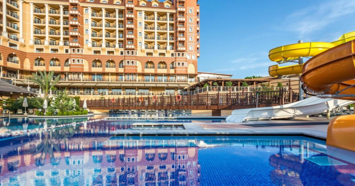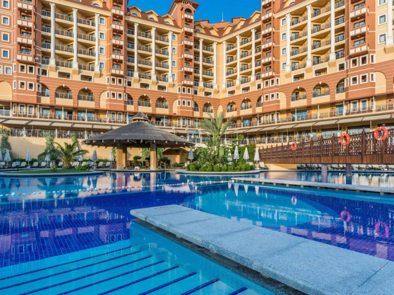 Localizare: hotelul este situat in apropiere dePlaja Kumkoy si la 50 km de Aeroportul Antalya. Facilitati hotel: 4 piscine, acces imediat la plaja, camere de familie, WiFi gratuit inclus, transfer de la si/sau la aeroport, spa si centru de wellness, parcare gratuita, sala de fitness, bar, zona de plaja privata. Dotari camere: balcon, vedere la gradina, aer conditionat, baie privata, TV cu ecran plat, Terasa, Minibar, WiFi gratuit. Servicii contra cost: serviciu de transfer, serviciu de curatatorie si calcatorie, snorkelling, scufundari, facilitati sporturi nautice, pescuit, echipament tenis, biliard, masaj, sala fitness, spa si centru wellness, sauna, jacuzzi. IMPORTANT: Descrierea hotelului se bazeaza pe detaliile disponibile la momentul pregatirii tarifelor pentru sezonul turistic ce urmeaza a se desfasura si are caracter pur informativ. Hotelul poate aduce modificari de structura, denumiri camere, tip servicii incluse/neincluse si altele, fara a notifica in prealabil. Pentru informatiile oficiale va rugam sa consultati website-ul hotelului.Datorita dinamicitatii domeniului disponibilitatea ofertelor se modifica de la un moment la altul. De aceea ofertele sunt valabile in limita locurilor disponibile. Agentia nu este responsabila pentru eventualele neconcordante care pot aparea intre informatiile privind tarifele si alte detalii din site si informatiile primite in agentie. In aceste cazuri vor avea prioritate, intotdeauna, informatiile primite in agentie.