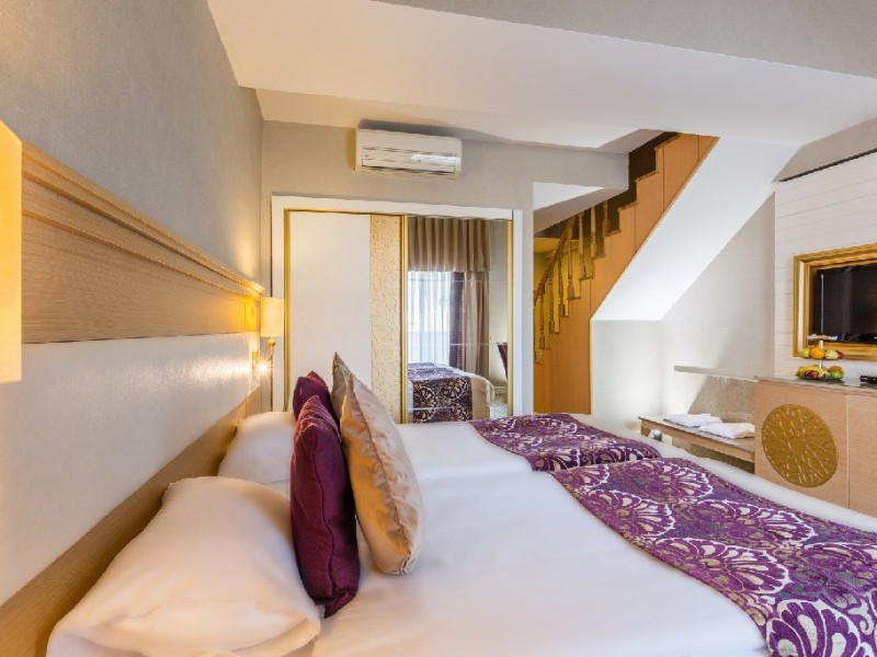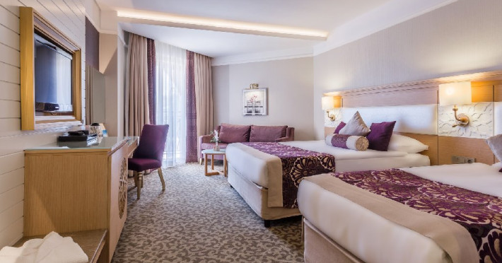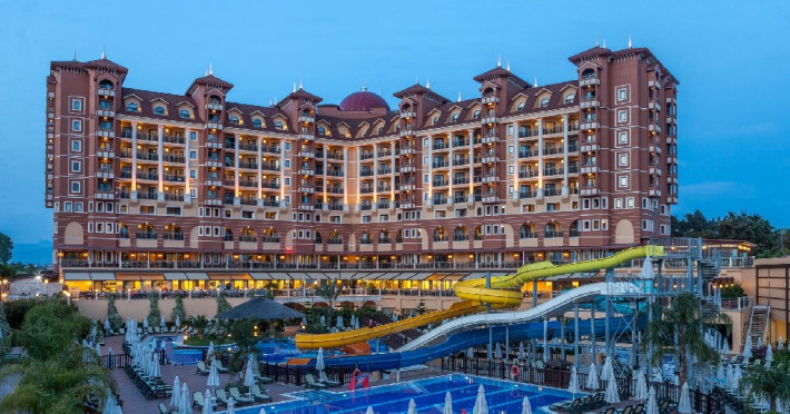 Facilitati generale: Hotelul ofera oaspetilor sai urmatoarele facilitati: restaurant principal, patiserie, 3 restaurante a la carte (cu specific italian, pescaresc si turcesc), 4 baruri, internet wi-fi, piscina interioara, sauna si baie turceasca, centru fitness, piscine exterioare, piscina exterioara cu tobogane, program de animatie seara, mini club si loc de joaca.