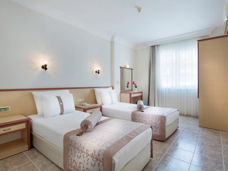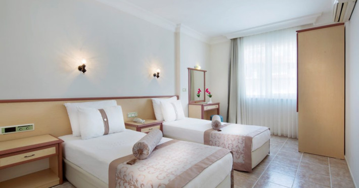 Camerele sunt in variantele Standard, De lux si Apartament. Sunt dotate cu aer conditionat, bucatarie, TV, minibar, seif, telefon, balcon cu vedere la piscina, mare sau munte. Wi-fi-ul este gratuit in incinta hotelului.