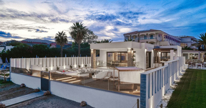 Bask in the luxury of Villa V, poised on the pristine sands of Zakynthos' renowned Laganas beach. Experience the caress of the soft sea breeze and relax in the villa's pool. Welcome to Villa V, where sun-soaked elegance meets tranquil comfort. Your dream beachfront escape awaits!Bask in the luxury of Villa V, poised on the pristine sands of Zakynthos' renowned Laganas beach. Experience the caress of the soft sea breeze and relax in the villa's pool. Welcome to Villa V, where sun-soaked elegance meets tranquil comfort. Your dream beachfront escape awaits!