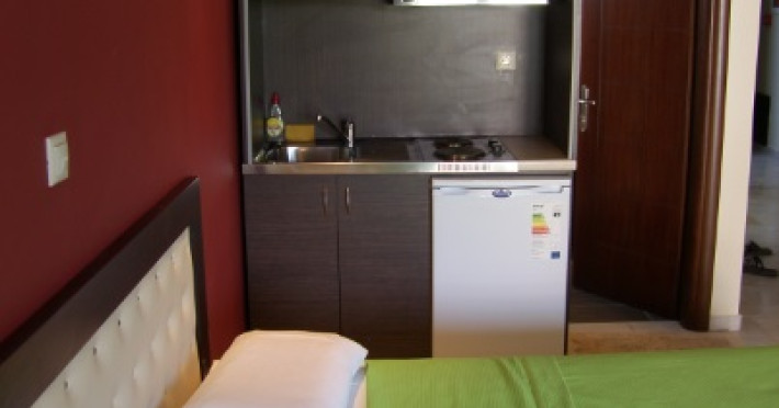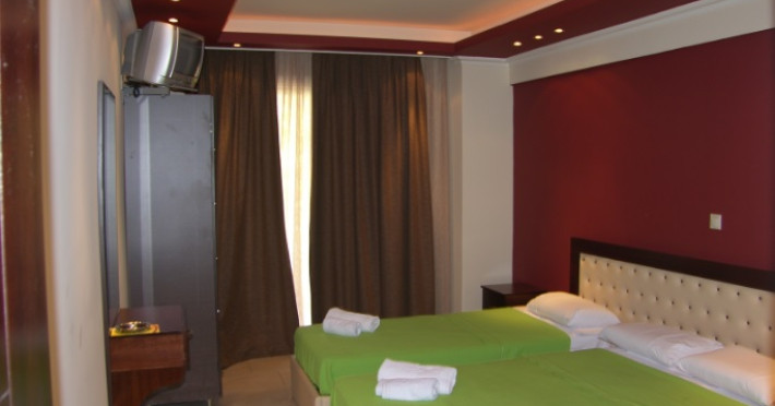 Vila Varonos are 3 etaje. Camerele sunt dotate cu grup sanitar propriu cu duș, mini frigider (gratuit), chicinetă, WiFi, TV, aer condiționat(contra cost, 5€/zi), balcon/terasa. Prosoapele nu sunt incluse.