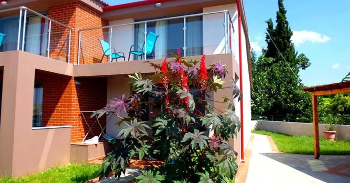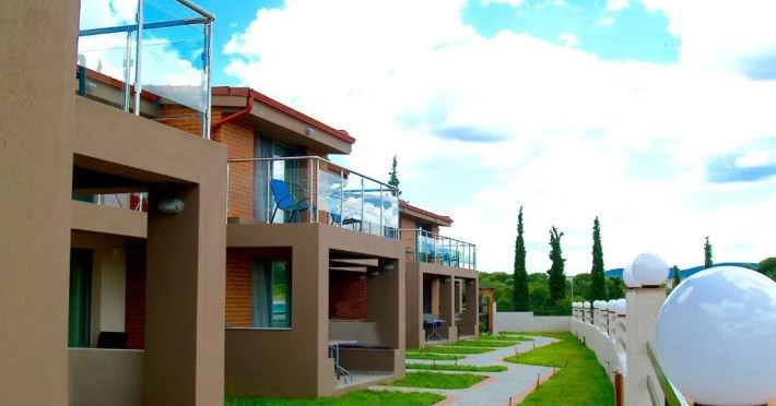 Cel mai apropiat aeroport este Aeroportul Salonic, situat la o distanță de 70 km. La cerere proprietatea organizează transfer la/de la aeroport contra cost.