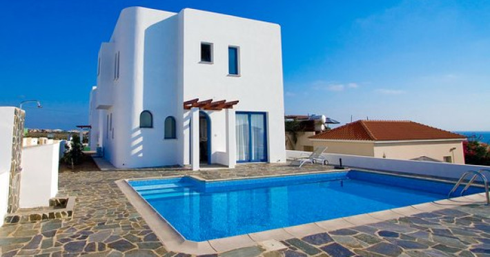 Meltemi Villas is an exceptional complex of eight beautifully designed and furnished villas located in a premium location at Chloraka village, 300m by the sea. All villas offers stunning views of the sea, starting from the Kato Paphos Lighthouse up to Coral Bay and beyond. The design of the villas is inspired by the Mediterranean Sea and the Greek islands and they have been tastefully decorated in a mixture of French seaside / Greek Islands theme with white, blue and green furniture with crisp cotton bedding and comfortable beds, sofas and white washed or rattan furniture.All villas are fully detached with their own private swimming pool. They are exquisitely designed, tastefully furnished and amply equipped with only one purpose in mind: to offer the comfort, relaxation and enjoyment in stylish surroundings that our discriminating guest expect for their enjoyment.