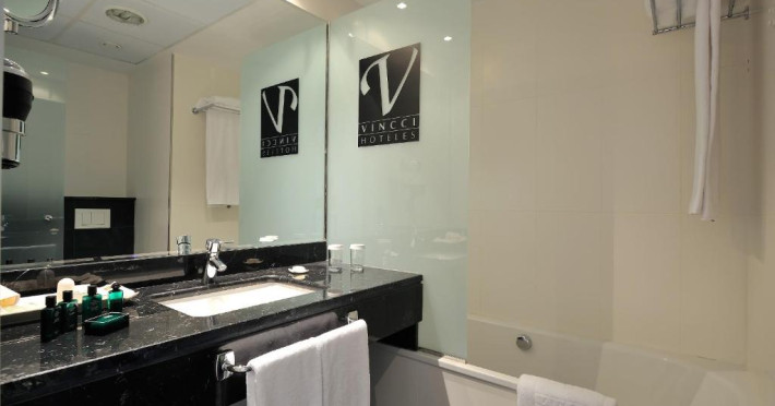 Hotelul oferă in fiecare zi un bufet de mic dejun continental, cu preparate dulci si sărate si produse fără gluten. Vincci include, de asemenea, un snack bar elegant, cu terasă in aer liber.
