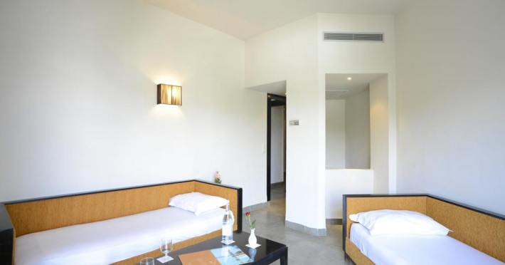 În camere există baie cu cadă sau duș ce are în dotare foehn și articole de toaletă gratuite. Unele camere au balcon cu vedere la mare, unde oaspeții pot admira apusul sau răsăritul soarelui. Fiecare cameră dispune de minibar. Oaspeții pot solicita serviciul de room service pentru a servi masa sau diverse băuturi. Camerele luminoase de la Vincci Nozha Beach sunt dotate cu mochetă, aer condiționat, Tv cu canale prin satelit și seif. Curățenia in cameră se face zilnic. Toate camerele spațioase de la Vincci Nozha Beach au zonă de relaxare cu canapea, ceea ce oferă un plus de confort. Proprietatea oferă camere pentru familie cu o suprafață mai mare și un număr mai mare de paturi față de cele standard. Se pot rezerva de asemenea camere pentru nefumători.