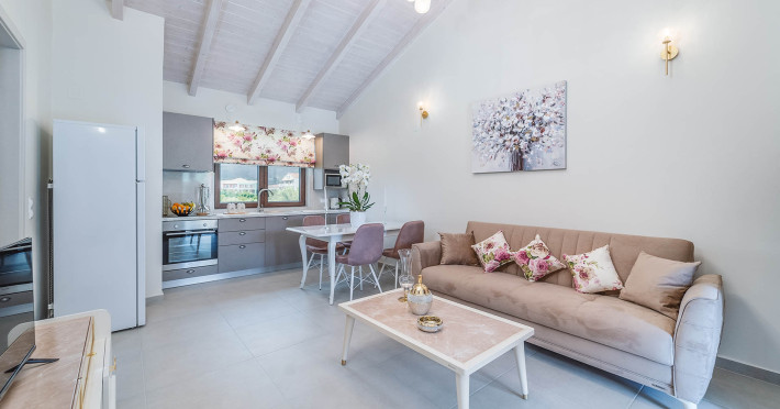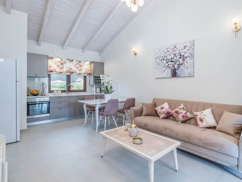 Just a short walk from the lively center of Nidri and only 150 meters from the sea, this modern suite is located in a quiet green garden, perfectly blended with the natural surroundings. A place designed for pleasant and relaxing holidays with easy access to everything you may need.