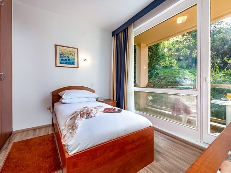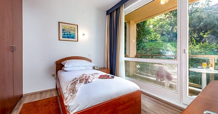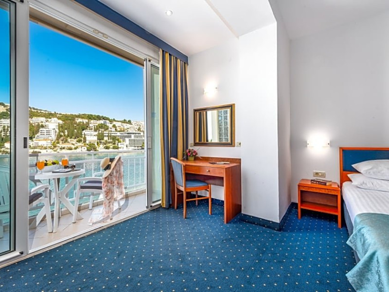 Descriere: Hotelul Vis de 3 stele din Dubrovnik, este locul ideal de vacanta pentru toti cei carora le place sa se relaxeze pe plaja. Localizarea pe malul Marii Adriatice cu apele albastre si limpezi ale Golfului Lapad, ii confera confort si farmec. Vederea Insulelor Elafiti la apusul soarelui va deveni una dintre cele mai pretuite imagini ale vacantei. Hotelul poate facilita diferite servicii, precum inchiriere de autoturisme, servicii de scufundari si tururi ale orasului cu un ghid profesionist. Pe promenada din Golful Lapad exista numeroase magazine, restaurante si cafe-baruri.Localizare: Centrul istoric al orasului Dubrovnik si promenada Stradun se afla la 15 minute de mers cu autobuzul. Hotelul Vis este situat la 25 km de aeroportul din Dubrovnik.