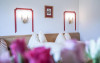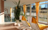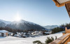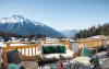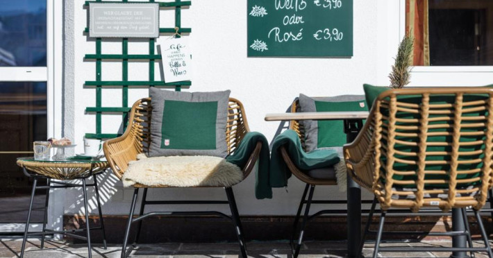 Oaspeții cazați la Vitalhotel Kaiserhof se bucură de o gustare după-amiaza. Pista de schi de 250 km este la 200 de metri de această proprietate.