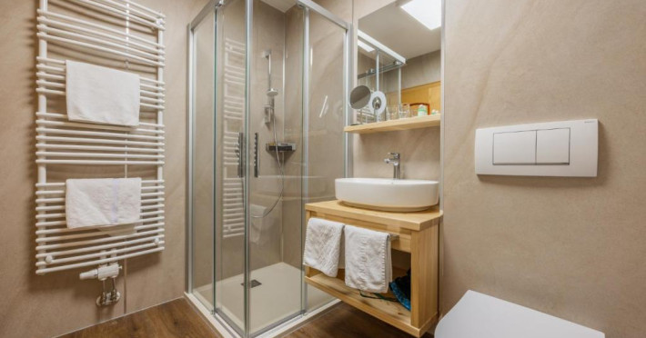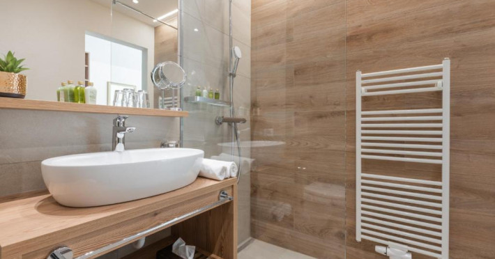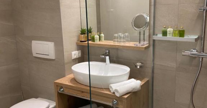 Camerele de la Vitalhotel Kaiserhof au minibar, zonă de relaxare și baie cu uscător de păr.