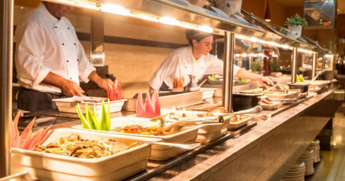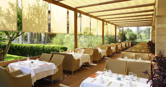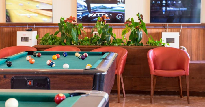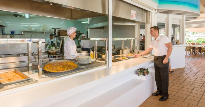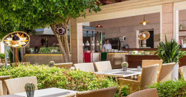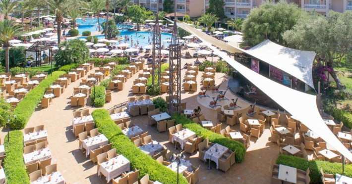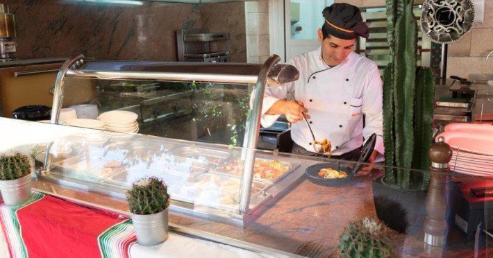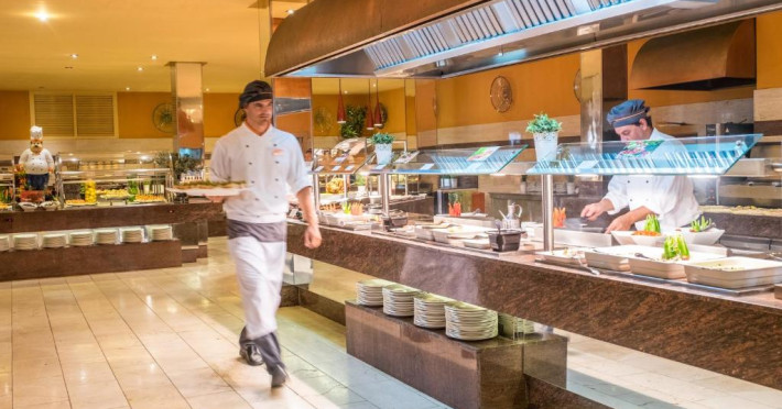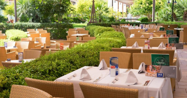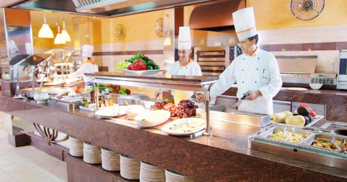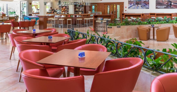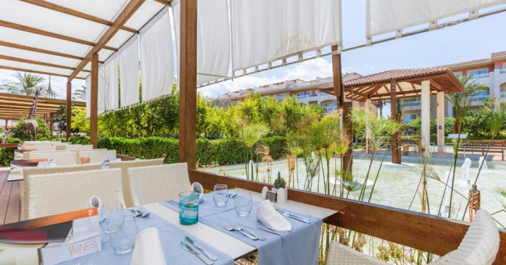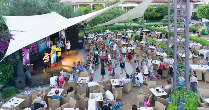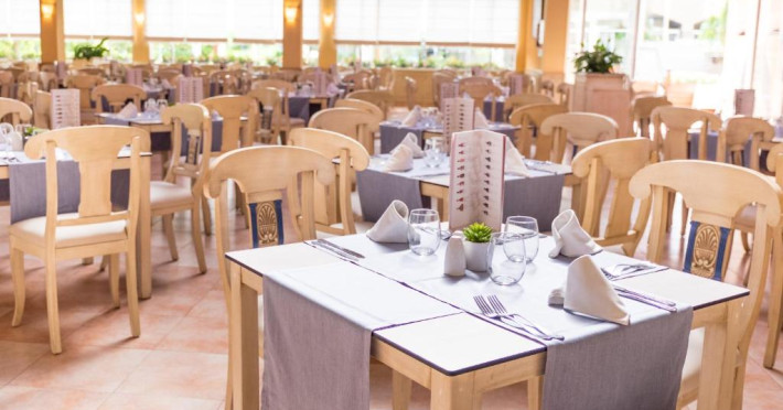 Există un snack bar la piscină, un mini-market și un restaurant tip bufet cu meniuri speciale pentru copii.
