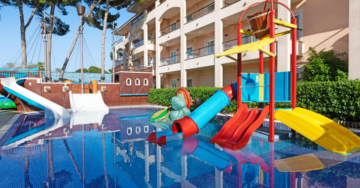 The accommodation Viva Blue & Spa is located approximately 100 m from a beach. The city centre is around 3 km away. The hotel is equipped with a 24h reception, Wi-Fi, 8 lifts, a shop as well as a jacuzzi. In the outdoor area of the property you will find a garden as well as a heated salt water pool that is open seasonally, where sun loungers, sun umbrellas and pool towels are available for free. For children there is also a separate children's pool. Furthermore, outside you can find a sun terrace. For very young guests, cots can be provided (for a fee). The energy supply is 220 Volts. If you want to explore the holiday region, you can use the car rental service close to the hotel (extra fee). Due to its barrier-free facilities , such as barrier-free entrances and wheelchair-accessible bathrooms, the hotel is also suitable for wheelchair users. Catering Breakfast is offered from the buffet. Lunch and dinner are also served from the buffet. For the meals, there are a buffet restaurant and 2 bars as well as the pool bar. Distances