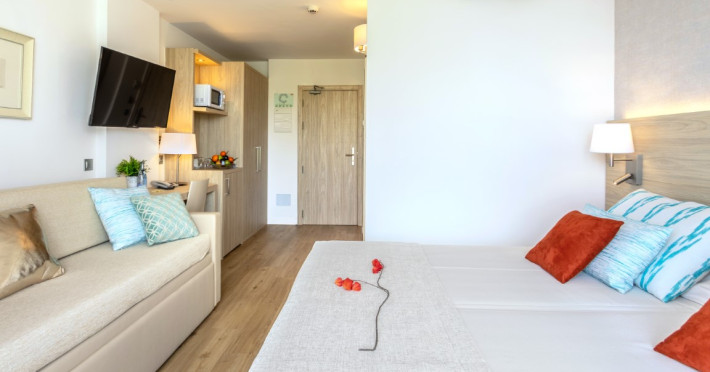 This attractive hotel enjoys a stunning location on Lake Esperanza in the Bay of Alcudia, just 150 m from the magnificent sandy beach. It takes just a few minutes to reach the centre of Alcudia with its scores of shops and other entertainment venues. SAlbufeira nature reserve is approximately 2 km away and it is 2.5 km to the harbour. This fully air-conditioned hotel offers a total of 202 apartments spread over 5 floors. The hotel has a large pool, landscaped garden and a 24-hour reception. Business guests may make use of the conference room and the Internet terminal (charge).This attractive hotel enjoys a stunning location on Lake Esperanza in the Bay of Alcudia, just 150 m from the magnificent sandy beach. It takes just a few minutes to reach the centre of Alcudia with its scores of shops and other entertainment venues. SAlbufeira nature reserve is approximately 2 km away and it is 2.5 km to the harbour. This fully air-conditioned hotel offers a total of 202 apartments spread over 5 floors. The hotel has a large pool, landscaped garden and a 24-hour reception. Business guests may make use of the conference room and the Internet terminal (charge).