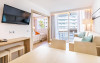 The accommodation Viva Eden Lago is located approximately 300 m from a beach. The hotel is equipped with a 24h reception as well as Wi-Fi. Outside there is a children's pool, where pool towels are available for free. Furthermore, you can relax outdoors in the garden. For the young hotel guests there is a playground. For very young guests, cots can also be provided (for a fee). The energy supply is 220 Volts. If you want to explore the holiday region, you can use the car rental service close to the hotel. Catering Breakfast is offered from the buffet. Dinner is served à la carte. For the meals, there are a buffet restaurant and a bar. Distances
