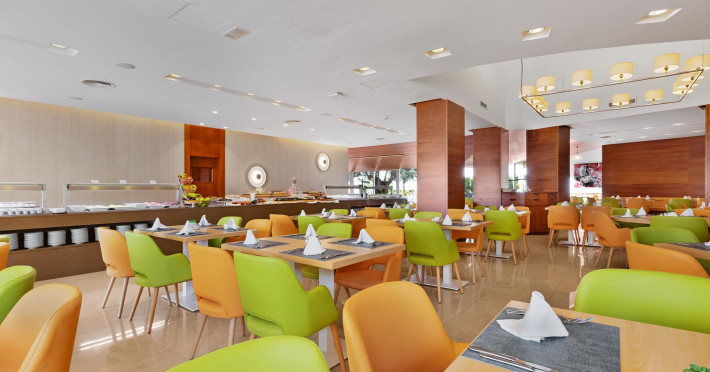 The accommodation Viva Eden Lago is located approximately 300 m from a beach. The hotel is equipped with a 24h reception as well as Wi-Fi. Outside there is a children's pool, where pool towels are available for free. Furthermore, you can relax outdoors in the garden. For the young hotel guests there is a playground. For very young guests, cots can also be provided (for a fee). The energy supply is 220 Volts. If you want to explore the holiday region, you can use the car rental service close to the hotel. Catering Breakfast is offered from the buffet. Dinner is served à la carte. For the meals, there are a buffet restaurant and a bar. Distances- Airport: approximately at 62 km