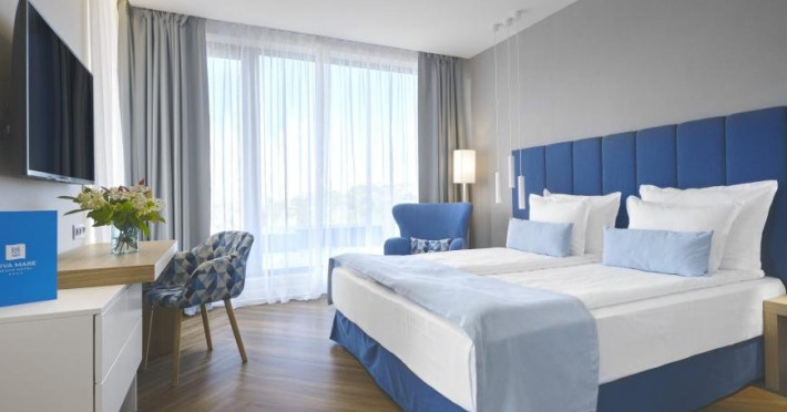 Localizare: Hotelul Viva Mare Beach este cel mai nou hotel din Sozopol, completarea natural a dezvoltarii unicului Sat de Vacant Santa Marina. Accesul la plaja este extrem de facil, practic la doar cativa pasi.Facilitati hotel: Hotelul pune la dispozitia clientilor: piscine, SPA si centru de wellness (contra cost), restaurant, Wi-Fi, parcare, baruri, loc de joaca pentru copii, cafenele, centru medical (contra cost), teren de fotbal (contra cost), spalatorie (contra cost).