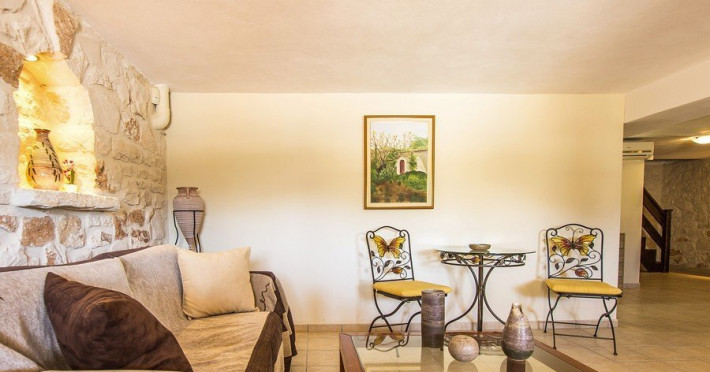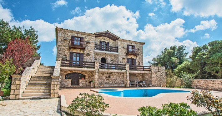 Situata in satul Koiliomenos, intr-o livada de maslini, la 480 m deasupra marii, arhitectura traditionala din piatra, are 300 m2, 4 dormitoare, living , bucatarie, 5 toalete, piscinaLocalizare
