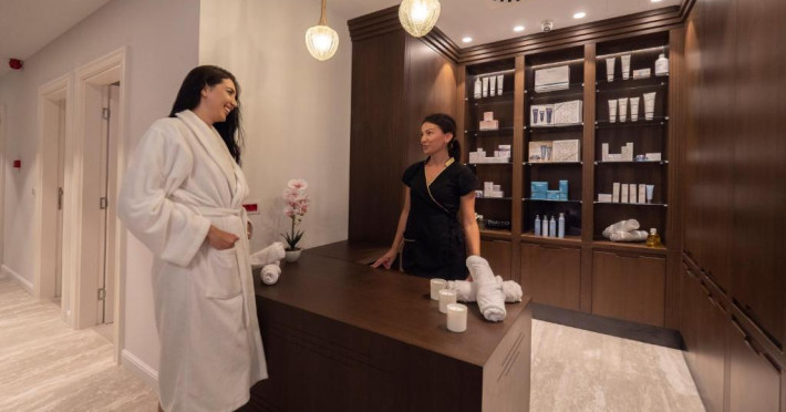Toți oaspeții beneficiază de o reducere de 15% la facilități spa. Aqua Blue Clinique Beauty and Spa pune la dispoziție dezvoltarea avansată de hidroterapie, cu nămol și alge de la Marea Moartă, precum și masaj și tratament holistice.