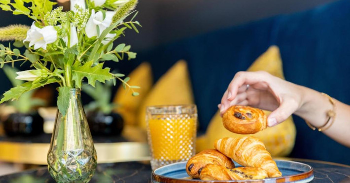 In fiecare dimineată, restaurantul Le Parnasse servește un mic dejun tip bufet, care include produse de patiserie franțuzești si ouă. Oaspeții se pot relaxa cu o băutură de la barul Scarlet pe terasă sau in hol.