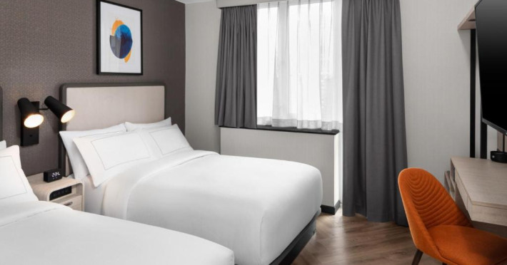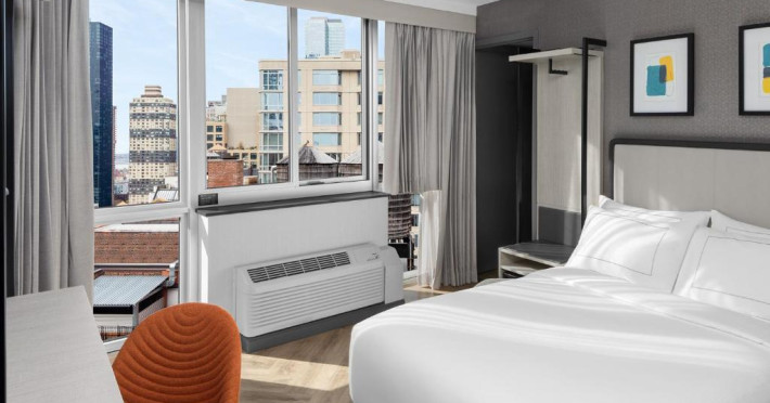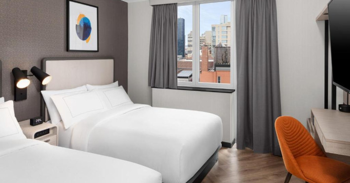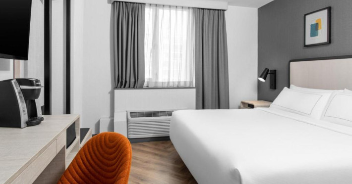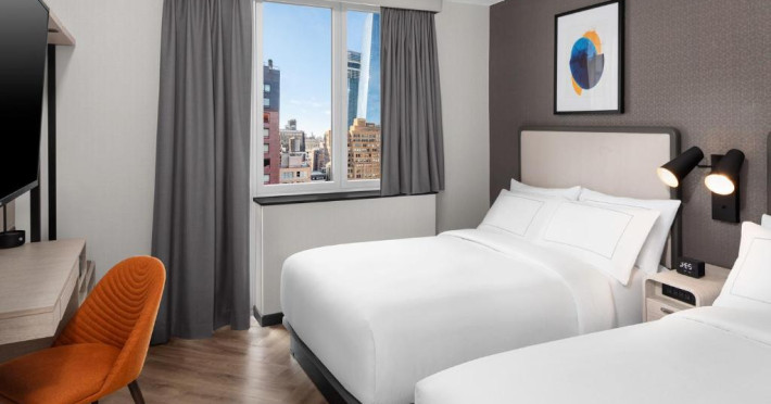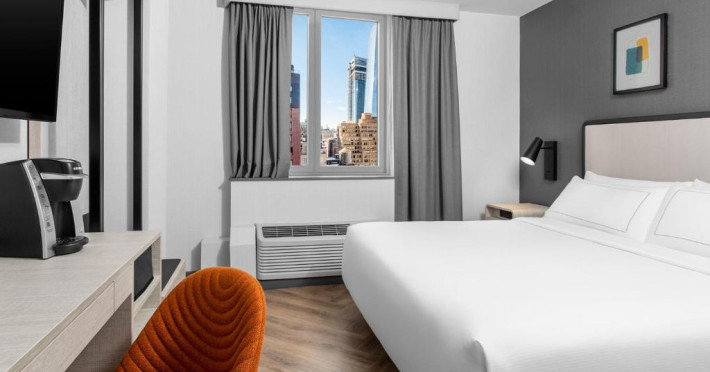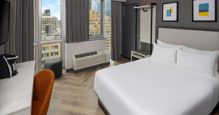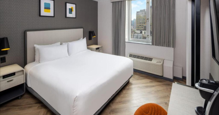 La cațiva pași de cartierul teatrului, voco Times Square South New York, an IHG Hotel oferă acces gratuit la internet WiFi in New York, la 750 de metri de cumpărăturile de la Macy’s din Herald Square. Oaspeții se pot bucura de terasa in aer liber și de restaurantul proprietății.