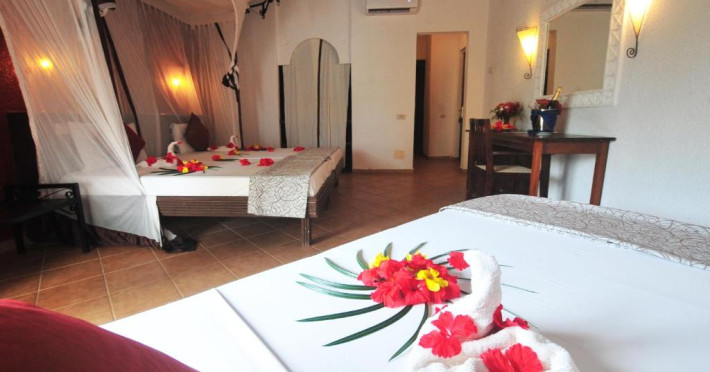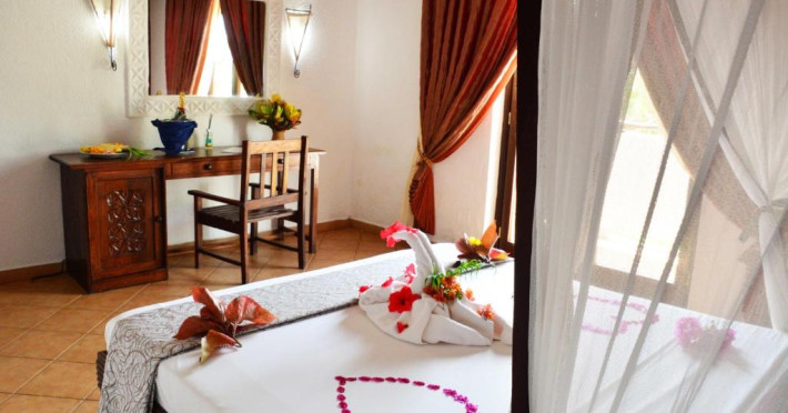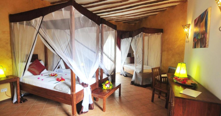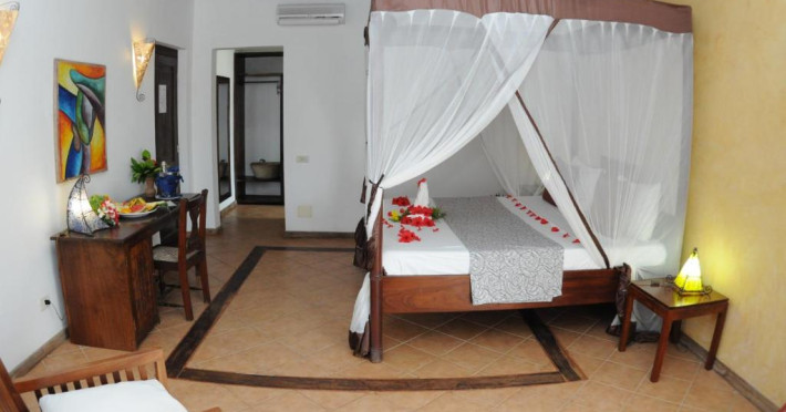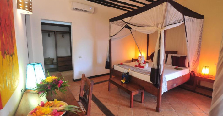Resortul dispune de două piscine inconjurate de palmieri, centru spa cu tratamente tradiționale și 3 restaurante care servesc specialități italiene și locale. Camerele sunt decorate in stil zanzibar și oferă vedere spre grădină sau ocean.