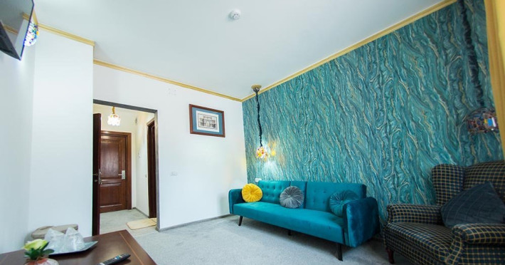Junior suite dispune de o suprafata de 37 mp, avand un living spatios cu canapea si dormitor cu pat matrimonial.