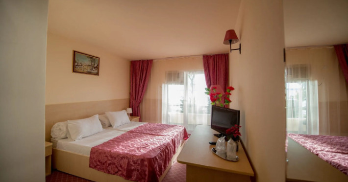 Its nice to come back to a place where you can have a rest after an eventful day in the city Hotel Voila Mamaia is located in Constana. This hotel is located in 11 km from the city center. You can take a walk and explore the neighbourhood area of the hotel. Places nearby: Mamaia Beach.Its nice to come back to a place where you can have a rest after an eventful day in the city Hotel Voila Mamaia is located in Constana. This hotel is located in 11 km from the city center. You can take a walk and explore the neighbourhood area of the hotel. Places nearby: Mamaia Beach.Spend an evening in a nice atmosphere of the bar. You can stop by the restaurant. Free Wi-Fi is available on the territory. Ask for more information when checking in. Tourists who cant live without swimming will appreciate an outdoor pool.For participants of business meetings will be able to use a business center, a conference hall, event facilities. For the free movement around the city, the hotel offers a transfer for you. Additional services that the hotel offers to its guests: a laundry.Spend an evening in a nice atmosphere of the bar. You can stop by the restaurant. Free Wi-Fi is available on the territory. Ask for more information when checking in. Tourists who cant live without swimming will appreciate an outdoor pool.For participants of business meetings will be able to use a business center, a conference hall, event facilities. For the free movement around the city, the hotel offers a transfer for you. Additional services that the hotel offers to its guests: a laundry.In the room, for you, there is a mini-bar. The room equipment depends on its category.In the room, for you, there is a mini-bar. The room equipment depends on its category. FEES The following fees and deposits are charged by the property at time of service, check-in, or check-out. * Fee for buffet breakfast: EUR 9.00 per person (approximately) The above list may not be comprehensive. Fees and deposits may not include tax and are subject to change.Datorita dinamicitatii domeniului disponibilitatea ofertelor se modifica de la un moment la altul. De aceea ofertele sunt valabile in limita locurilor disponibile. Agentia nu este responsabila pentru eventualele neconcordante care pot aparea intre informatiile privind tarifele si alte detalii din site si informatiile primite in agentie. In aceste cazuri vor avea prioritate, intotdeauna, informatiile primite in agentie.