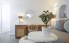Cel mai apropiat aeroport este Aeroportul Internaţional din Santorini, situat la o distanță de 3,3 km. La cerere proprietatea organizează transfer la/de la aeroport contra cost.