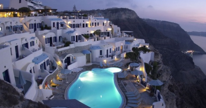 Hotelul Volcano View se afla la o scurta distanta de orasul Fira, capitala insulei Santorini.