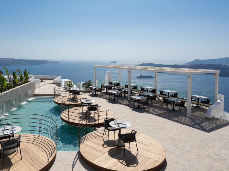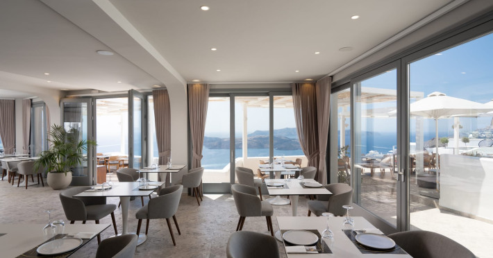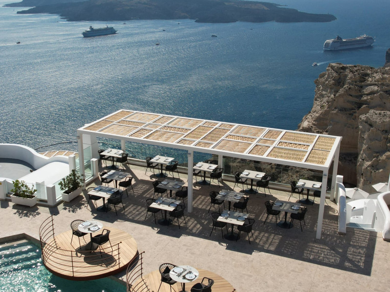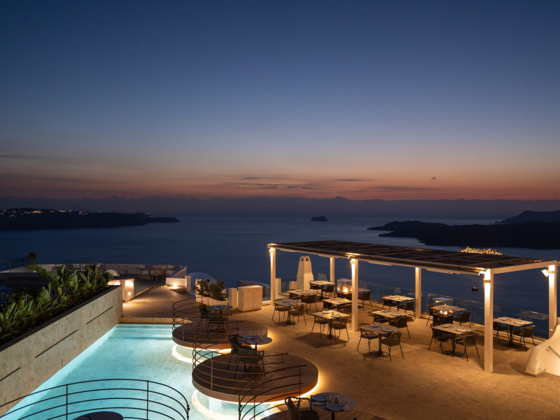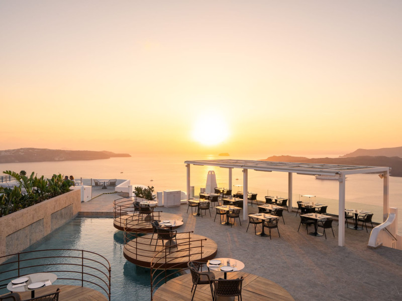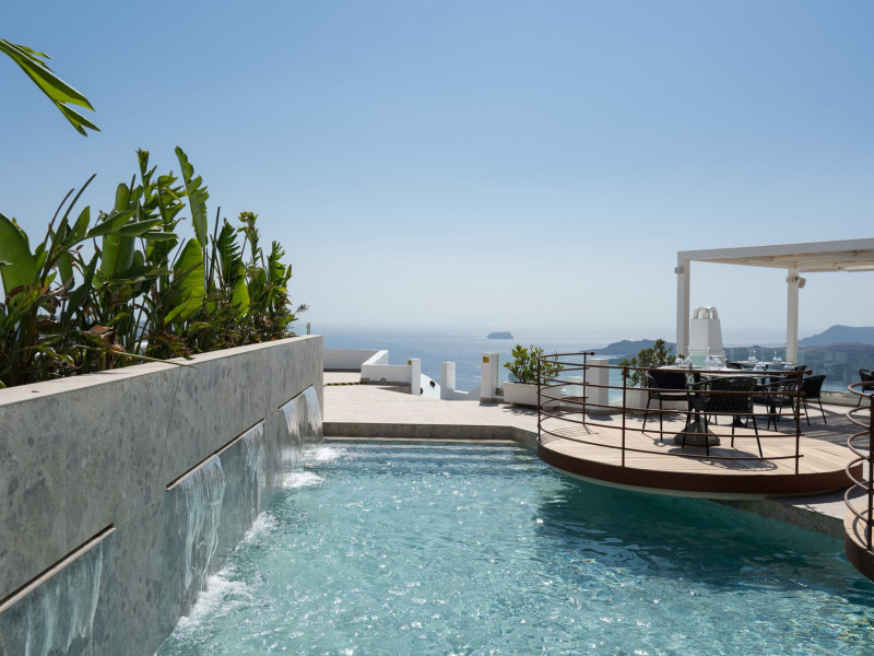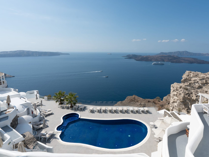 It is here, just a short distance from Fira, Santorini’s modern capital and perched high on the crest of the sheer Caldera cliffs, that the Volcano View Hotel and Villas are situated. Standing on the edge of the 400m high Caldera, this luxury 5 star hotel and 5 star villas hotel overlooks the clear blue Aegean Sea and offers magnificent panoramic views of the 18 km long caldera and Santorini’s spectacular sunsets.SANTORINI’S 5 STAR HOTEL & 5 STAR VILLASThe largest hotel and villa accommodation on Santorini featuring 85 exceptional rooms and 7 VIP luxury villas with private pools, the Volcano View Hotel and Villas has earnt its superior status as being one of the best on the island by providing its guests with the highest quality services and amenities. The traditional Cycladic architectural style, decorative frescoes and the melange of bright colours throughout add to its considerable appeal.Ranked as one of the world’s top islands, Santorini with its stone and white-washed buildings, smooth sandy beaches and hot desert climate is as near to an unspoilt paradise as one can get. The sheer beauty of this popular holiday destination can easily take a visitor’s breath away and greatly contributes in creating a truly memorable experience for holidaymakers.The Volcano View Hotel and Villas wish you a pleasant stay!IMPORTANT NOTICE: Please note that during the off-season (between October 15th and April 15th), due to low outside ambient temperatures and potentially strong winds, the outdoor pools and hot tubs may not reach desired temperatures. Between April 15 and October 15th Pool temperatures are set to 28 Celsius and Hot Tubs are set to 37 Celsius. Weather anomalies in the summer period may also negatively affect these set temperatures.It is here, just a short distance from Fira, Santorini’s modern capital and perched high on the crest of the sheer Caldera cliffs, that the Volcano View Hotel and Villas are situated. Standing on the edge of the 400m high Caldera, this luxury 5 star hotel and 5 star villas hotel overlooks the clear blue Aegean Sea and offers magnificent panoramic views of the 18 km long caldera and Santorini’s spectacular sunsets.SANTORINI’S 5 STAR HOTEL & 5 STAR VILLASThe largest hotel and villa accommodation on Santorini featuring 85 exceptional rooms and 7 VIP luxury villas with private pools, the Volcano View Hotel and Villas has earnt its superior status as being one of the best on the island by providing its guests with the highest quality services and amenities. The traditional Cycladic architectural style, decorative frescoes and the melange of bright colours throughout add to its considerable appeal.Ranked as one of the world’s top islands, Santorini with its stone and white-washed buildings, smooth sandy beaches and hot desert climate is as near to an unspoilt paradise as one can get. The sheer beauty of this popular holiday destination can easily take a visitor’s breath away and greatly contributes in creating a truly memorable experience for holidaymakers.The Volcano View Hotel and Villas wish you a pleasant stay!IMPORTANT NOTICE: Please note that during the off-season (between October 15th and April 15th), due to low outside ambient temperatures and potentially strong winds, the outdoor pools and hot tubs may not reach desired temperatures. Between April 15 and October 15th Pool temperatures are set to 28 Celsius and Hot Tubs are set to 37 Celsius. Weather anomalies in the summer period may also negatively affect these set temperatures.