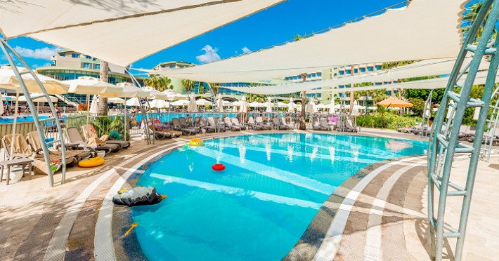 Hotel Von Resort Golden Coast este situat la 55 km de aeroportul Antalya, la 9 km de orasul Side, in localitatea Colakli, pe malul marii, avand o suprafata totala 65000 mp.Facilitati camere
