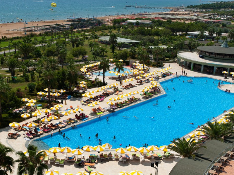 Descriere: Hotelul a fost deschis in anul 2002 si a fost complet renovat in 2013. Are o suprafata totala de 50.000 mp si dispune de 404 camere repartizate pe 6 etaje.Localizare: Hotelul este situat pe malul marii, in localitatea Colakli, la 55 km de aeroportul din Antalya. Orasul Side se afla la 12 km distanta.