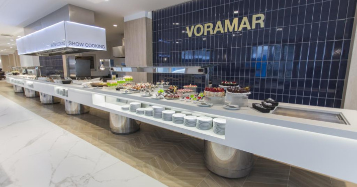 La Hotel Voramar oaspeții au la dispoziție un restaurant care servește mâncare în stil bufet. Bucătăria mediteraneană de la Hotel Voramar propune preparate delicioase care satisfac gusturi diverse. Masa poate fi servită atât în interior, cît si în aer liber, pe terasă, în funcție de vreme. Oaspeţii pot avea diverse băuturi răcoritoare sau alcoolice la bar. În cadrul proprietății există și un snack bar care servește băuturi și gustări. Pentru cei cu anumite nevoi de nutriție, Hotel Voramar oferă meniuri pentru diete speciale.