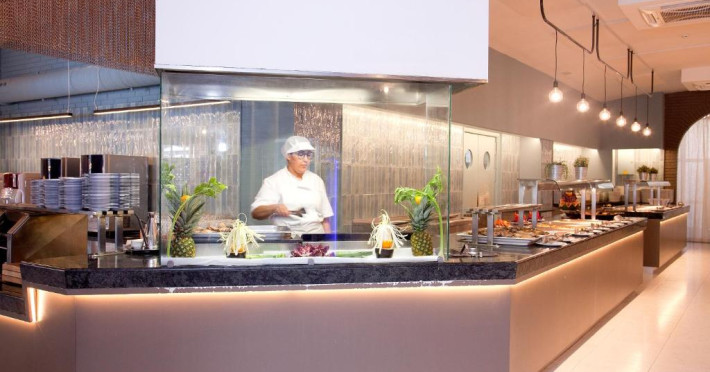 Complexul Voramar are un restaurant tip bufet și o cafenea-bar langă piscină. Se pot solicita pranzuri la pachet. Un supermarket se află la doar 2 minute de mers pe jos.