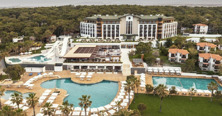 Facilitati hotel :Hotelul ofera oaspetilor sai multiple facilitati: restaurant principal, 6 restaurante a la carte, patiserie, 10 baruri, 9 piscine piscine exterioare pentru adulti si copii, piscine cu tobogane, piscia interioara, centru Spa, baie turceasca, sauna, baie cu aburi, miniclub pentru copii si adolescenti, volei pe plaja, tenis, mini fotbal, aerobic, sporturi acvatice (canoe, windsurfing - cu certificat), centru de fitness, darts, mini golf, tenis de masa, boccia, biliard, tenis de masa, discoteci, programe de animatie in timpul zilei, spectacole in timpul serii si muzica live, sala de conferinte.