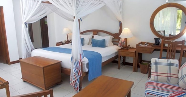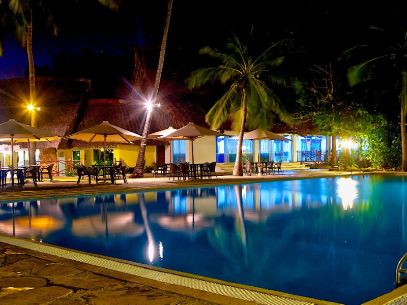 Descriere: Hotelul Voyager Beach de 4 stele este amplasat in mijlocul unei gradini luxuriante de palmieri si flori tropicale si are o panorama pitoreasca asupra Oceanului Indian. Complexul care se intinde de-a lungul plajei, dispune de facilitati moderne si ofera servicii de calitate.Localizare: Hotelul este situat pe plaja costei de nord a Kenyei, la 13 km de aeroportul international si la cativa km de centrul orasului Mombasa.